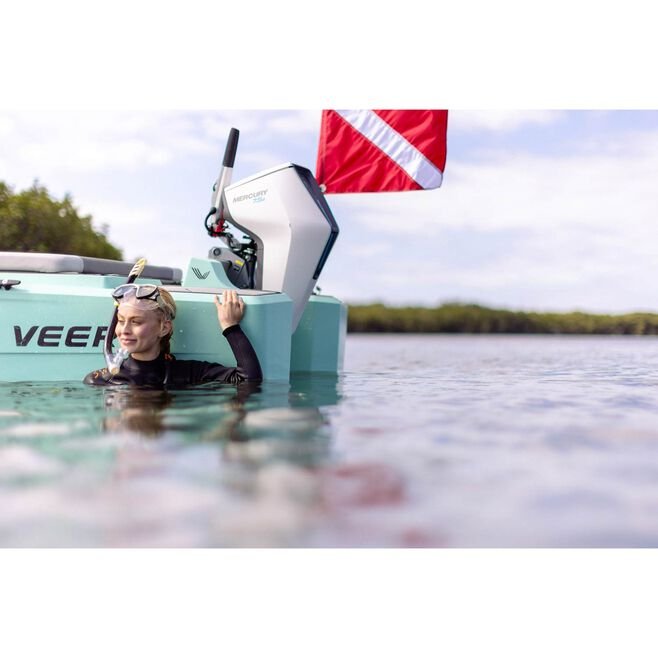 Discover a new, sustainable way to explore the water with a Mercury Avator 7.5e electric outboard. Available in a portable tiller configuration or with remote throttle controls, the 7.5e outboard can be paired with a variety of small boats, including jon boats, inflatables and small fishing boats, or as secondary power on a sailboat. It makes going boating easy. Just slide the quick-connect battery in place, turn it on and you’re on your way.